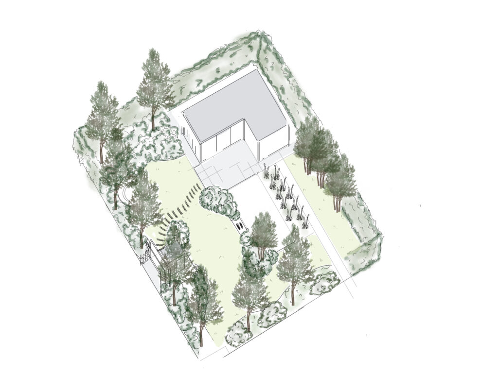 Ik kijk naar de unieke mogelijkheden die de tuin biedt, samen met de uitgesproken tuinwensen vertaal ik dit in een schetsontwerp en enkele sfeerimpressies.