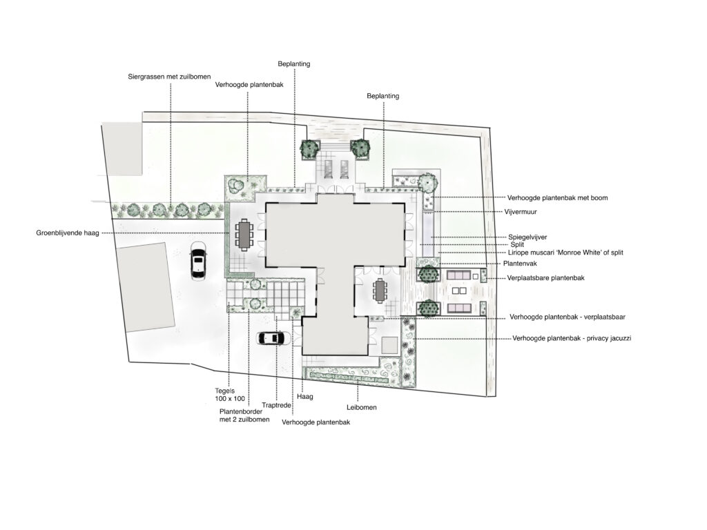Het definitief ontwerp is in detail uitgewerkt. Denk aan de juiste maatvoeringen en materiaal gebruik. Met dit definitieve ontwerp kun je zélf aan de slag in je tuin óf de uitvoering overlaten aan een ervaren hovenier.